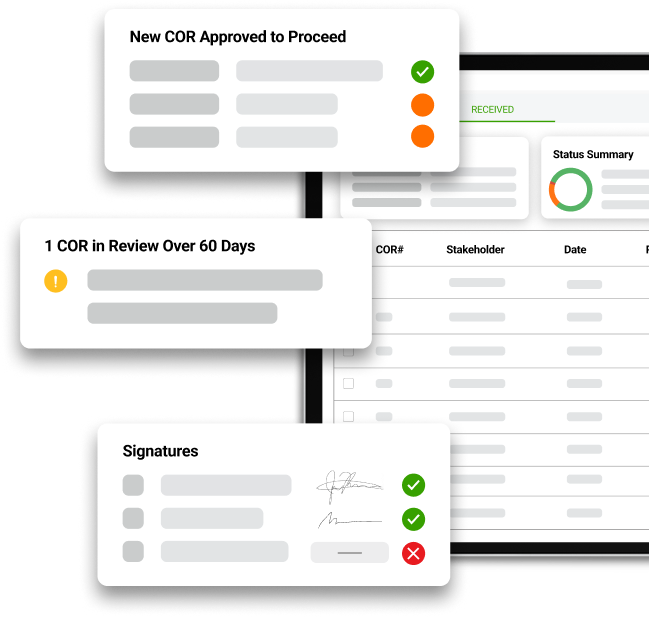 One source of truth that updates in real time. No version confusion and total transparency for a 70%+ reduction in time processing CORs between stakeholders.